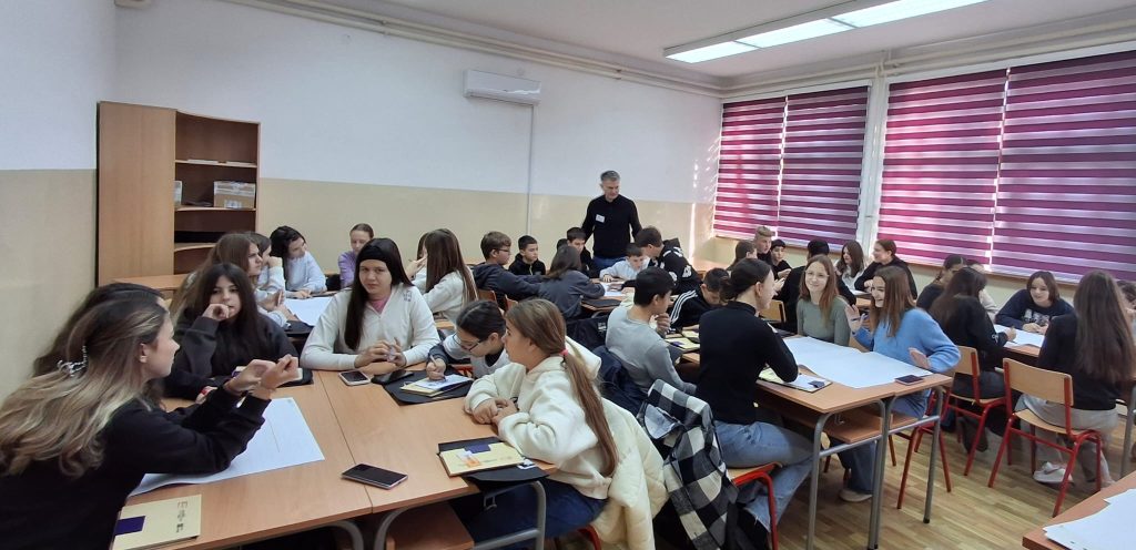 In the primary schools in Žabari and Aleksandrovac, the Film Eco-Festival “Broom” project started. More than 60 seventh and eighth grade students participated in the workshops. In the first part, students tried to define the biggest challenges they face in protecting their environment. Then they went through basic training on filmmaking (types of shots, plans, composition, artistic elements, technical characteristics), as well as training on the aesthetics of short documentary and feature film forms. They had the opportunity to apply what they had learned in a short film exercise, and then they moved on to creating a script for their first film. The students divided the roles into groups (director, cinematographer, editor and actors) and by the end of the workshop they had devised a script for a film that would deal with one of the environmental topics they had previously defined, which concern problems in their environment. For the next 13 days, the students will shoot and edit their first ecological film, and then they will have the opportunity to show their creations at the Eco-festival, where the best will receive the “Golden Broom” award in different categories.