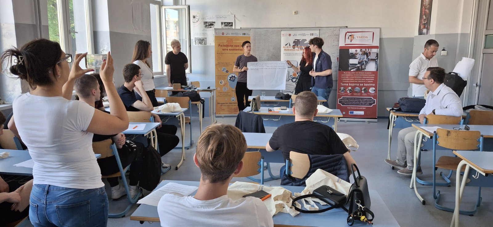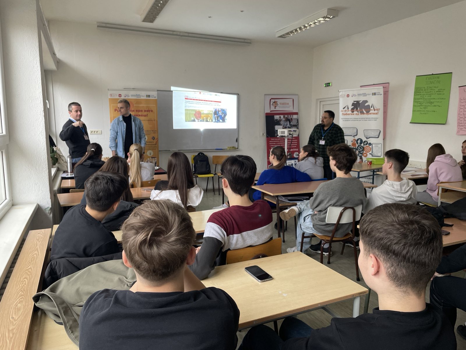 From the end of November to the end of May, ten media literacy workshops were held as part of the “Lie Detector” project in primary and secondary schools in the Braničevo district. The workshops were held in five primary and five secondary schools in Žabari, Aleksandrovac, Ranovac, Veliki Gradište, Kučevo, Petrovac na Mlava and Požarevac. The “Lie Detector” project is jointly implemented by the Association for the Education of Youth and Adults and Boom 93, as part of the “Youth and Democratic Development” project, which is implemented in partnership with the Belgrade Open School and with the support of Sweden. The workshops were organized for students and teachers, and were held by Živojin Ivković, Slobodan Jotić, Petar Pantić and Dušan Radovanović from the Association for the Education of Youth and Adults from Požarevac and Marko Tadić, an expert in social networks at the Boom 93 portal. The workshops for students had two parts. In the first part, students had the opportunity to remind themselves of the basic concepts of media literacy. They talked about what the media is, what information is, how the media is shared, then about different types of disinformation in the media, the importance of checking sources and techniques for identifying fake news. All this was shown to the students through examples from social networks and portals. In the second part of the workshop, the students had a practical task, where they themselves were in the role of those who create news, and had the opportunity to, by creating fake news, think about the purpose with which such news is marketed and the audience it is intended for. This increased their awareness of how important it is to be careful and check what reaches them through different channels. The channel through which students get the most information is social networks, as shown by research, such as the “Alternative Report on the Position and Needs of Youth 2024” of the Youth Umbrella Organization of Serbia, as well as the answers that students gave us through interviews. That is why part of these workshops was dedicated to social networks, how they function, algorithms and how they attract our attention. In addition to students, workshops were also organized for teachers, with whom the importance of media literacy in teaching was discussed and possible approaches and materials that can be used when dealing with this topic in different classes were presented. Below, see the photos and listen to the interviews we did after the workshops of the previous months.