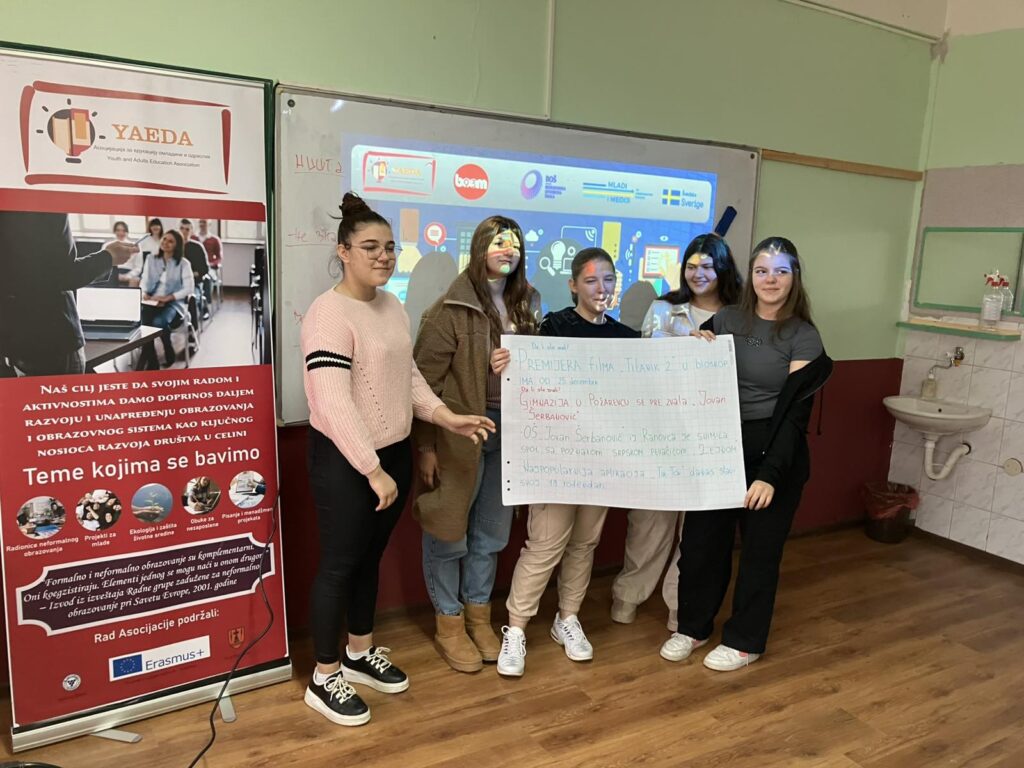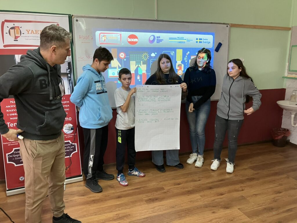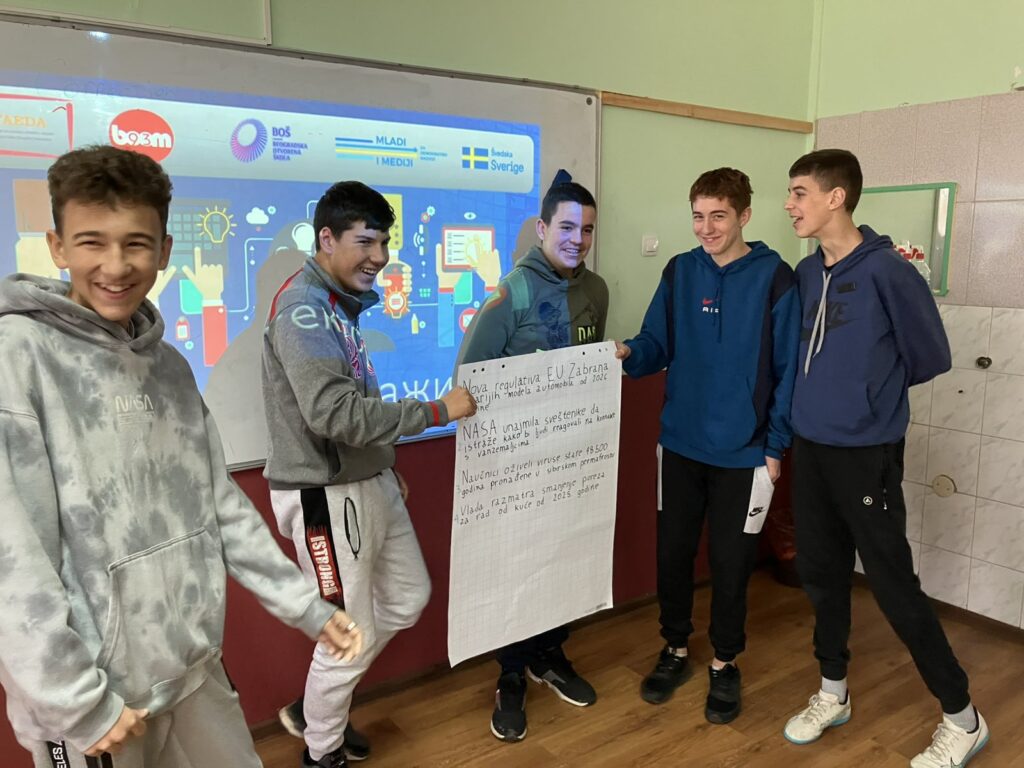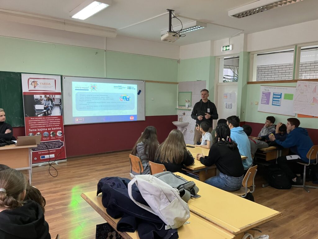 A workshop on the topic of media literacy was held at the “Jovan Šerbanović” Elementary School in Ranovac, within the “Lie Detector” project. This project is jointly implemented by the Association for the Education of Youth and Adults Požarevac and Boom 93, as part of the “Youth and Democratic Development” project, which is implemented in partnership with the Belgrade Open School and with the support of Sweden. The workshop gathered 15 students, and the first part was focused on understanding the basic concepts of media and their function.