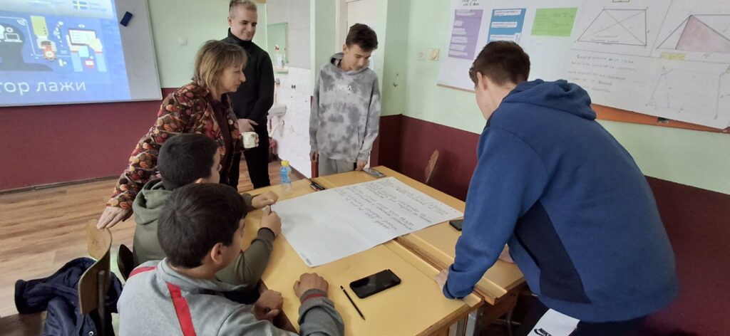 Most of the students pointed out that the most interesting part of the workshop was the one in which they themselves came up with true and false news. We spoke with seventh and eighth grade students – Mihajlo Petrović, Anastasija Marković, Nikolina Ivanović and Sara Stanković. We asked them which part of the workshop was the most interesting for them, how they plan to check the accuracy of information from the media in the future, how they understood the algorithms so far, what kind of content attracts their attention the most and how they think they can help their peers understand the media better. When asked how they would check whether any information is true in the future, they stated that they would use multiple sources to search, while some added that they would consult with trusted persons. When it came to content that caught their attention, students noted that algorithms often directed their attention to topics such as language learning, dance, and science facts. As for how they can help their peers better understand media and information, students suggested always checking information from multiple sources. In situations where they are not sure, they recommended seeking help from older people or teachers at school.